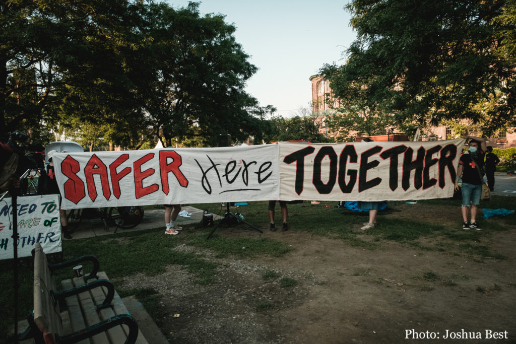 Knowing the city had no plans to house encampment residents after destroying their homes and possessions, Encampment Support Network Parkdale facilitated the relocation of many of those residents to Dufferin Grove Park in Toronto’s west end.