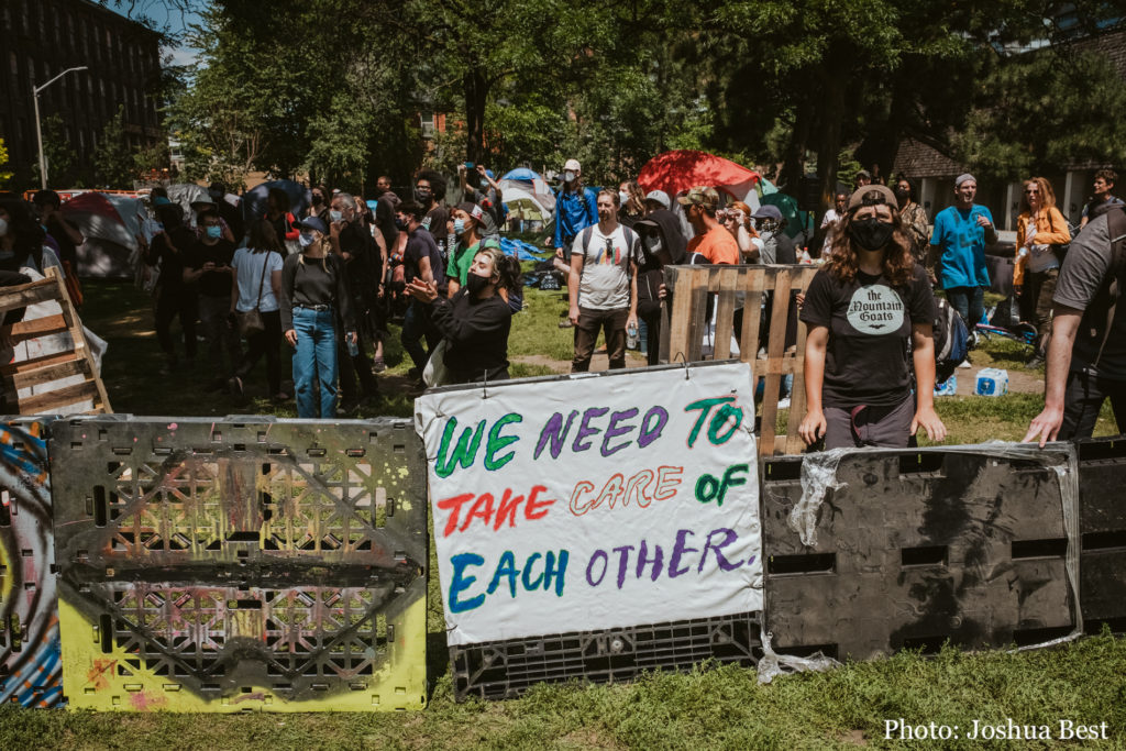 What is perhaps most commonly discussed about the eviction at Lamport Stadium Park is the outright cruelty that the City of Toronto and its police force unleashed against unhoused people and their supporters. But what appears to be missing from the conversation, a year after the media frenzy ignited by the evictions – and what may indeed provide a modicum of hope to those of us who shun state violence – is the transformational role that community resistance played on that day, and what we can learn from Lamport as organizers.